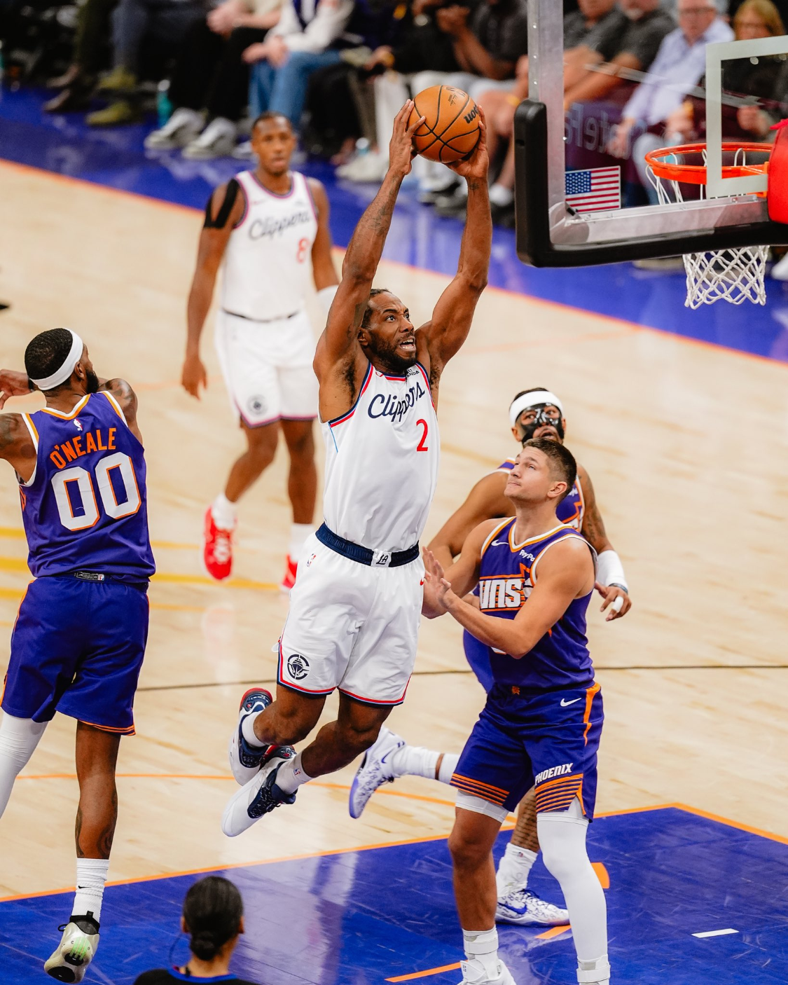 快船队的莱纳德得到25分、8个篮板和5次助攻,米勒得到20分,科林斯得到16分和9个篮板,祖巴茨得到14分和20个篮板,桑德斯得到12分和4次助攻。太阳队的阿伦得到23分和8次助攻,布鲁克斯得到22分和5个篮板,吉莱斯皮得到12分和4个篮板,古德温得到12分和6个篮板。
